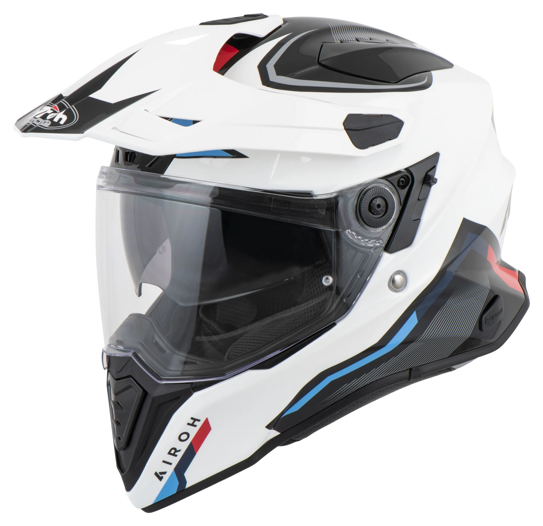 The Airoh *Commander* is a pleasantly lightweight enduro helmet that feels absolutely comfortable off-road and on the big tour. Whether with sunshade and visor over hill and dale or without sunshade on asphalt – fun is guaranteed with the *Commander*. And of course, this enduro helmet can also be driven without a visor. A very wide field of vision, the integrated sun visor, the fixed comfort interior, the extremely favorable weight, the ventilation concept with 4 inlets and venting in the back of the head – everything pays into the account Airoh *Commander* – “I-Want-to-have-it”.