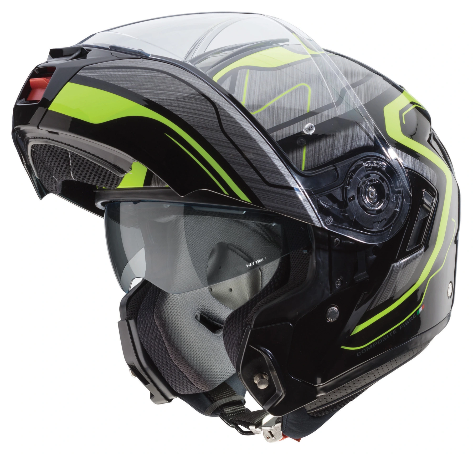 Back in 1992, Caberg became the first of the Italian helmet specialists to put a flip-up helmet on the market. In fact, it was only the second firm anywhere in the world. The vast experience they have accumulated since then is, of course, embodied in the Caberg Levo. That also means features such as an ultra-deep visor for a very wide field of view, biker-friendly weight and comfortable lining. Quite simply a helmet for any tour and for everyday!