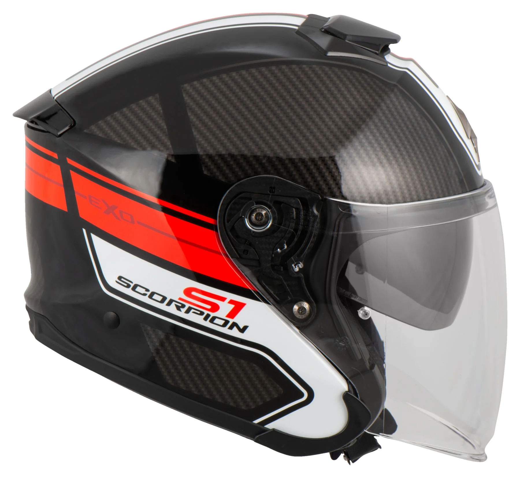 Welcome to the Exo world from Scorpion The *Exo-S1*, for example, is an exceptional jet helmet from the French helmet experts. The stand-out features start with the distinctive, modern shape. In addition, the *Exo-S1* is engineered using the special Thermodynamical Composite Technology (TCT). What that means is a helmet structure that’s extremely lightweight yet gives an unprecedented level of protection for your head.